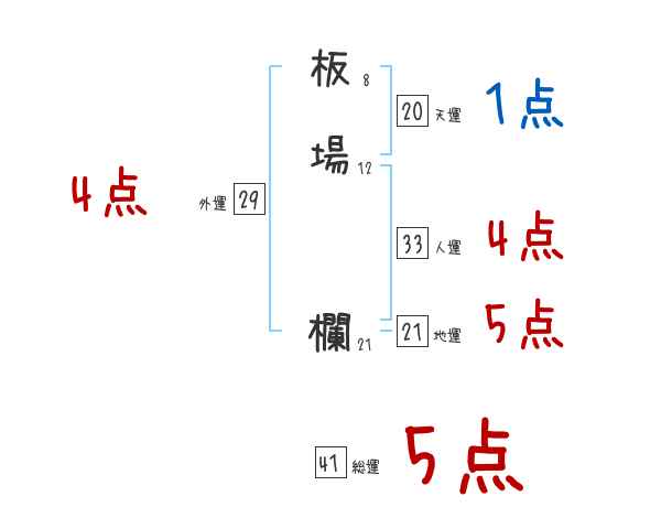 総運![]() | 板場欄さんの総運は41画の5つ星!大志を抱き、目標に向かって実力を発揮し達成する。温和な性格。 あなたの人生を表す1番重要な運勢です。生涯を通じて影響する総合運となり、主に50歳以降の晩年期に影響を及ぼします。 |