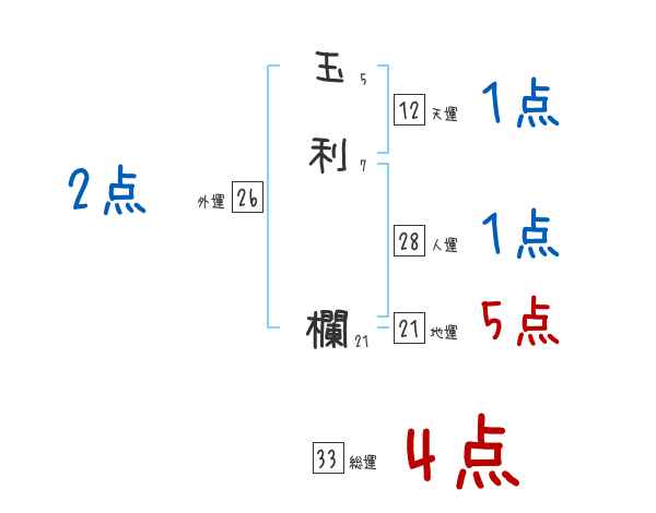 玉利欄さんの画数の鑑定結果