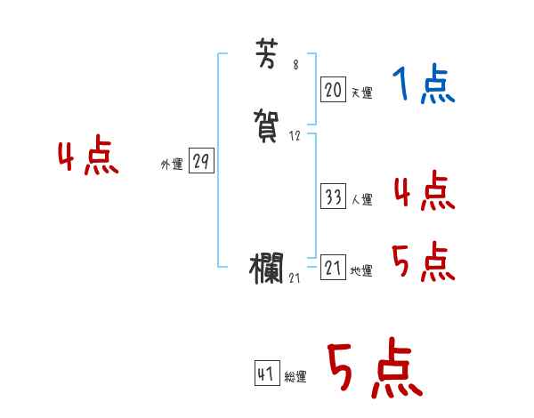 総運![]() | 芳賀欄さんの総運は41画の5つ星!大志を抱き、目標に向かって実力を発揮し達成する。温和な性格。 あなたの人生を表す1番重要な運勢です。生涯を通じて影響する総合運となり、主に50歳以降の晩年期に影響を及ぼします。 |