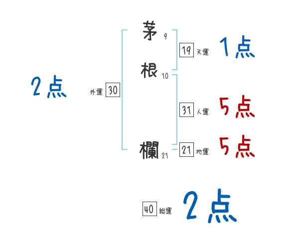 茅根欄さんの画数の鑑定結果