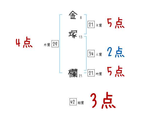 金塚欄さんの画数の鑑定結果