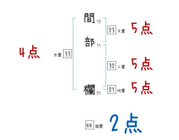 間部欄さんの画数の鑑定結果