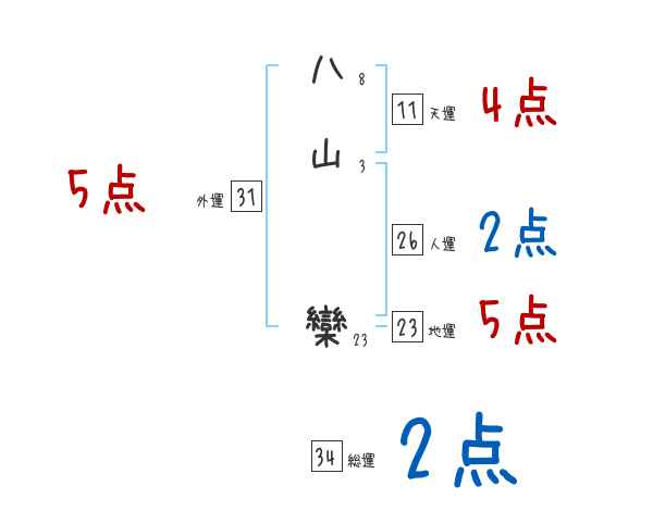 八山欒さんの画数の鑑定結果