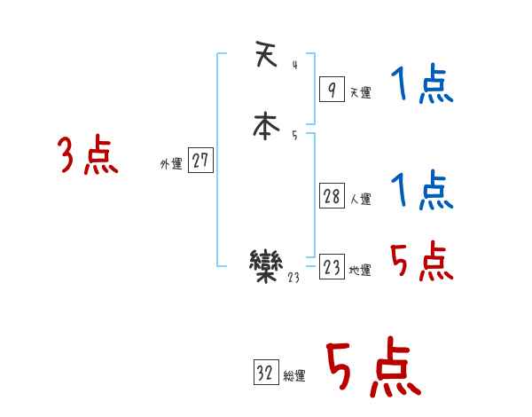 天本欒さんの画数の鑑定結果