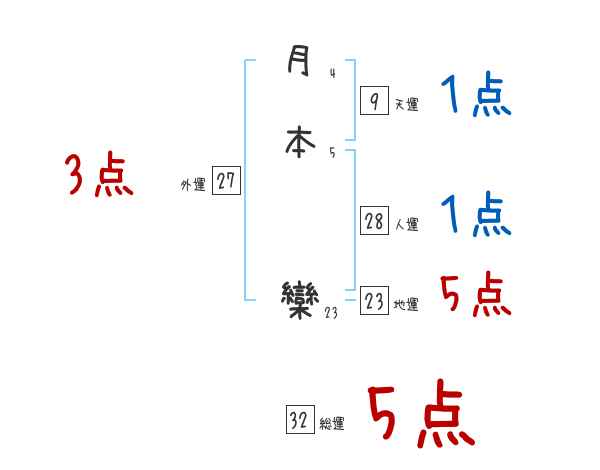 月本欒さんの総運は32画の5つ星
