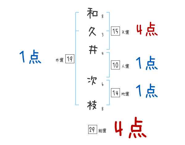 和久井次枝さんの画数の鑑定結果