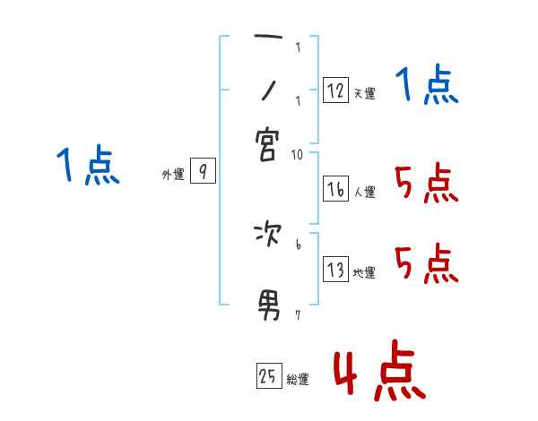 一ノ宮次男さんの画数の鑑定結果