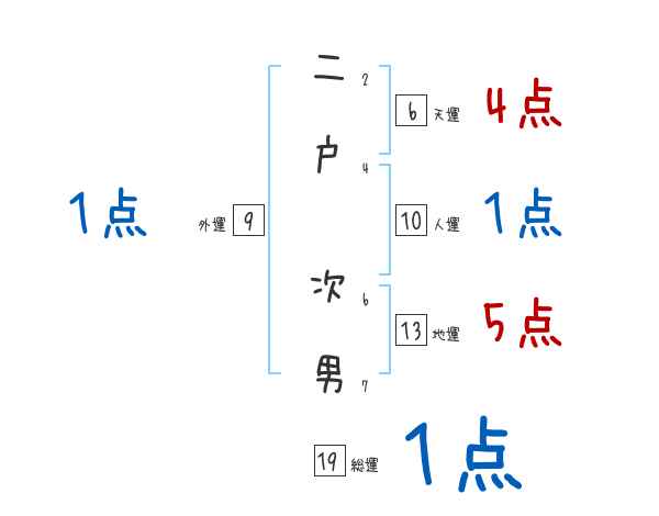 二戸次男さんの画数の鑑定結果