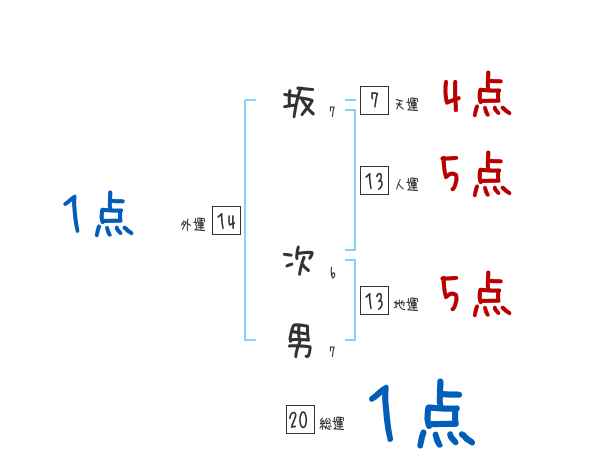 坂次男さんの画数の鑑定結果