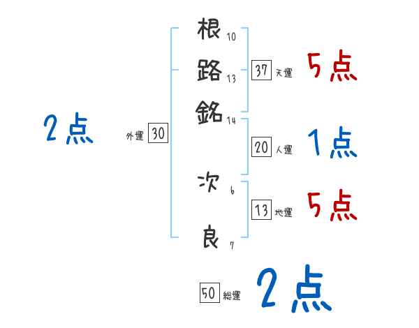 根路銘次良さんの画数の鑑定結果