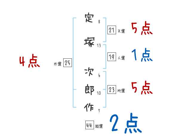 定塚次郎作さんの画数の鑑定結果
