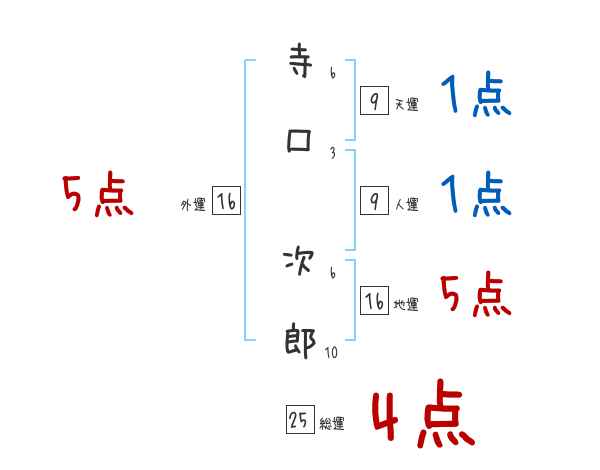 寺口次郎さんの画数の鑑定結果