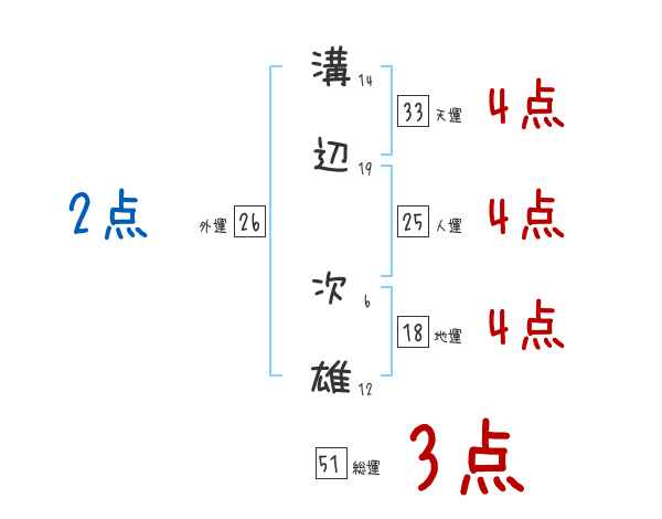 溝辺次雄さんの画数の鑑定結果