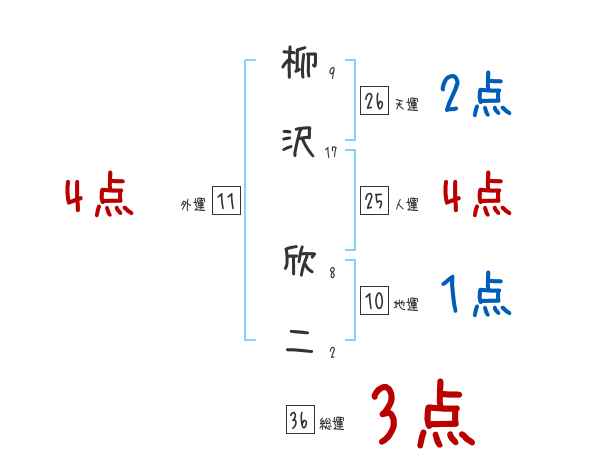 柳沢欣二さんの画数の鑑定結果
