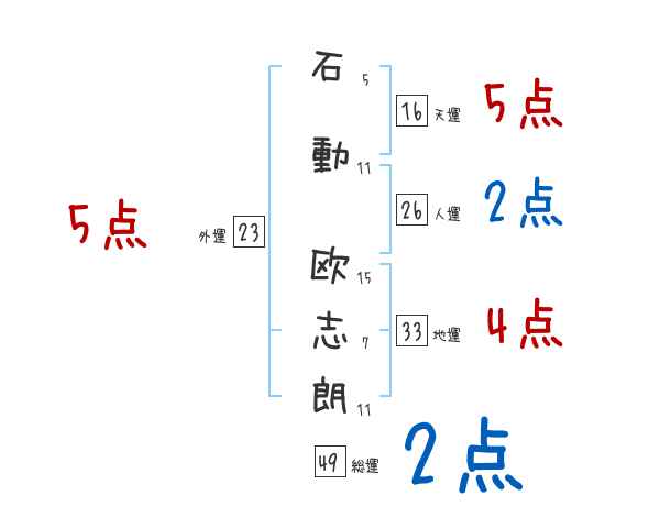 天運![]() | 石動欧志朗さんの天運は16画の5つ星!人望が厚く大きく発展する。逆転成功が見える。 家系が持つ宿命的な運勢を表します。祖先から受け継いだ苗字ですので自分の力が及びません。家柄を象徴します。 |