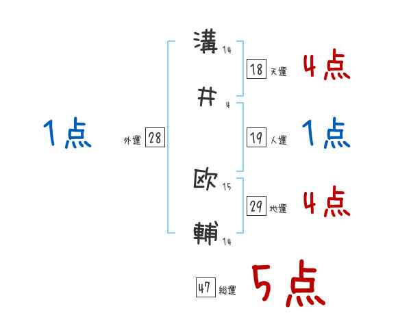天運![]() | 溝井欧輔さんの天運は18画の4つ星!情熱的で剛気。忍耐力があり信頼される。 家系が持つ宿命的な運勢を表します。祖先から受け継いだ苗字ですので自分の力が及びません。家柄を象徴します。 |