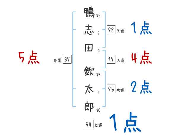 天運![]() | 鴨志田欽太郎さんの天運は28画の1つ星!家庭環境に注意。スポーツで活躍できる能力があるかも。 家系が持つ宿命的な運勢を表します。祖先から受け継いだ苗字ですので自分の力が及びません。家柄を象徴します。 |