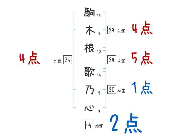 駒木根歌乃心さんの画数の鑑定結果