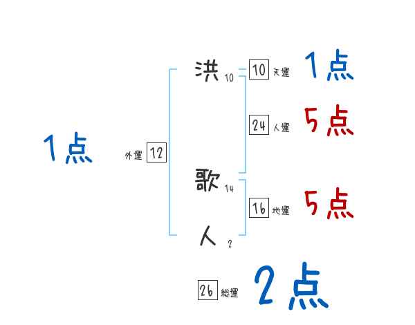 総運![]() | 洪歌人さんの総運は26画の2つ星!波瀾万丈かも。信頼できる人を大事にしましょう。 あなたの人生を表す1番重要な運勢です。生涯を通じて影響する総合運となり、主に50歳以降の晩年期に影響を及ぼします。 |