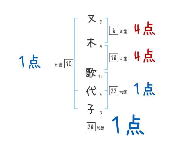 総運![]() | 又木歌代子さんの総運は28画の1つ星!家庭環境に注意。スポーツで活躍できる能力があるかも。 あなたの人生を表す1番重要な運勢です。生涯を通じて影響する総合運となり、主に50歳以降の晩年期に影響を及ぼします。 |