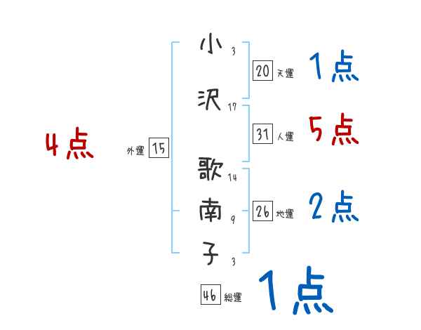 小沢歌南子さんの画数の鑑定結果