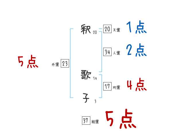釈歌子さんの画数の鑑定結果
