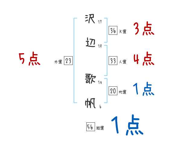 沢辺歌帆さんの画数の鑑定結果