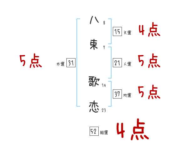 八束歌恋さんの画数の鑑定結果