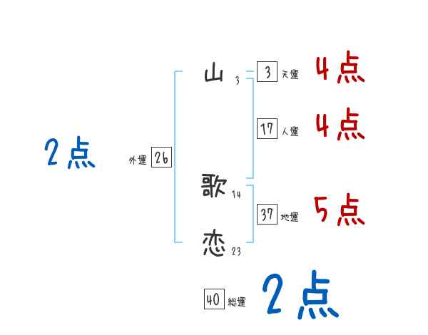 山歌恋さんの画数の鑑定結果