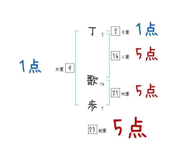 丁歌歩さんの画数の鑑定結果