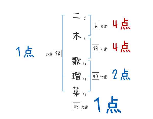 二木歌瑠菜さんの画数の鑑定結果