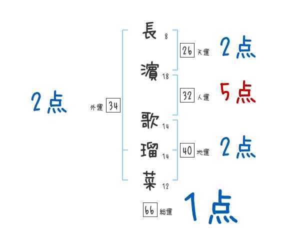 長濵歌瑠菜さんの画数の鑑定結果