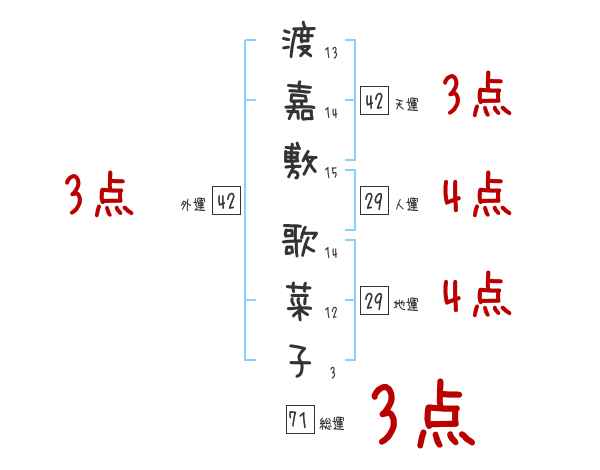 渡嘉敷歌菜子さんの画数の鑑定結果