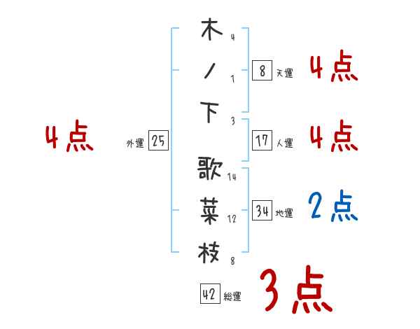 総運![]() | 木ノ下歌菜枝さんの総運は42画の3つ星!病気に注意。多芸であるが消極的でおとなしい。 あなたの人生を表す1番重要な運勢です。生涯を通じて影響する総合運となり、主に50歳以降の晩年期に影響を及ぼします。 |