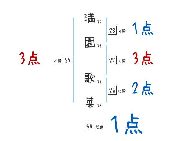 満園歌菜さんの画数の鑑定結果