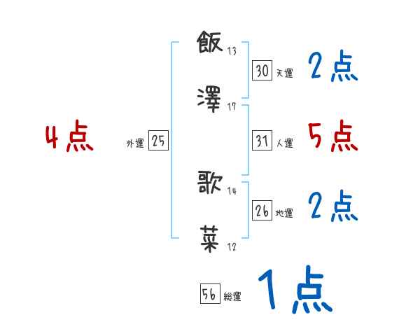 飯澤歌菜さんの画数の鑑定結果