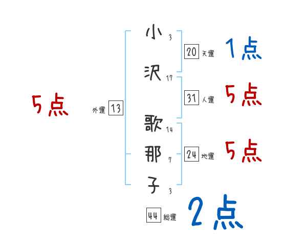 小沢歌那子さんの画数の鑑定結果