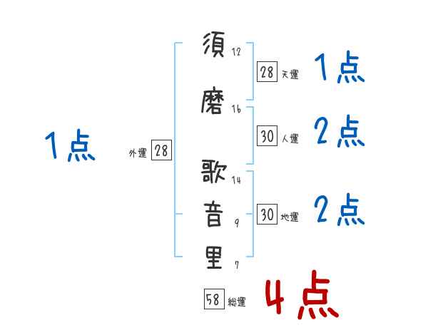 家系が持つ宿命的な運勢を表します。祖先から受け継いだ苗字ですので自分の力が及びません。家柄を象徴します。
