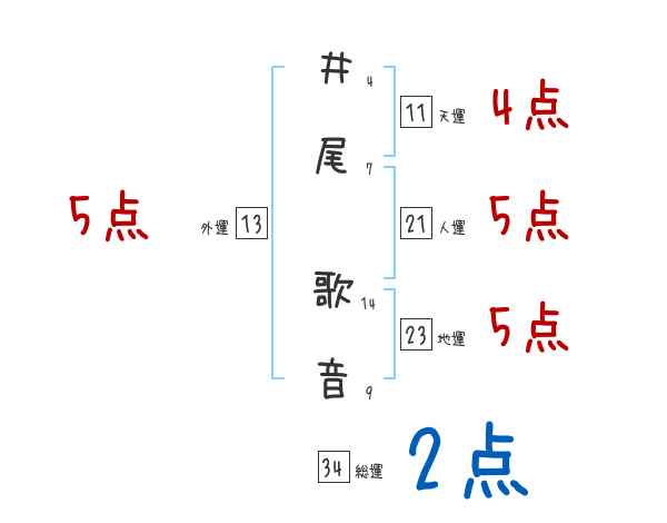 井尾歌音さんの画数の鑑定結果