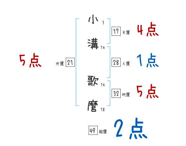 小溝歌麿さんの画数の鑑定結果