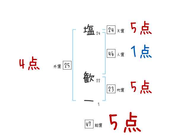 塩歓一さんの画数の鑑定結果