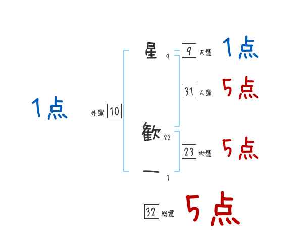 星歓一さんの画数の鑑定結果