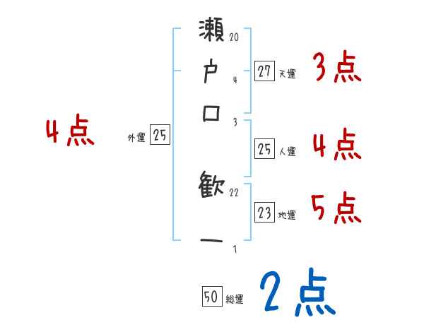 瀬戸口歓一さんの画数の鑑定結果