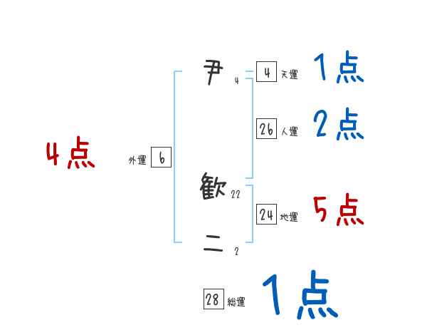 尹歓二さんの画数の鑑定結果