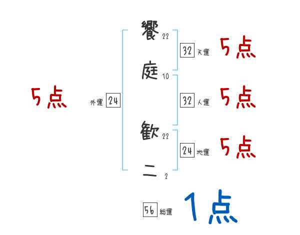 饗庭歓二さんの画数の鑑定結果