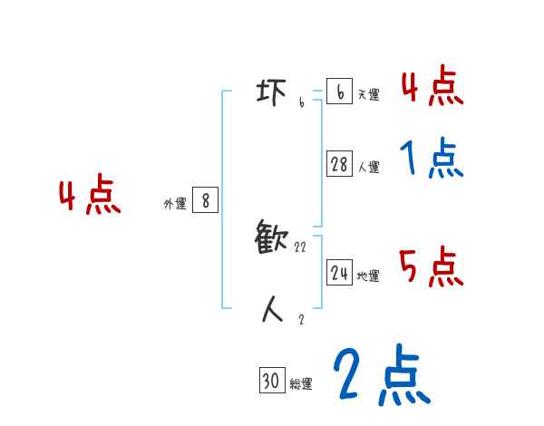 天運![]() | 圷歓人さんの天運は6画の4つ星!慎重な努力家で信頼を得る。誠実な精神で向上心に優れる。 家系が持つ宿命的な運勢を表します。祖先から受け継いだ苗字ですので自分の力が及びません。家柄を象徴します。 |