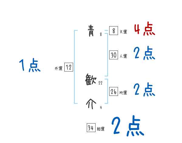 青歓介さんの画数の鑑定結果