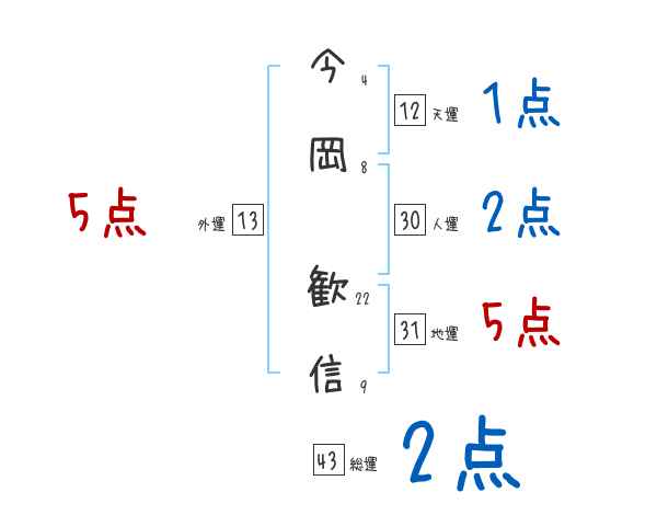 今岡歓信さんの画数の鑑定結果