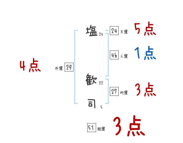 塩歓司さんの画数の鑑定結果
