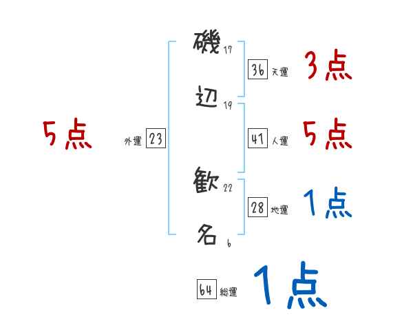 磯辺歓名さんの画数の鑑定結果